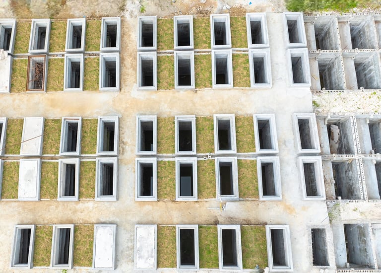 Des espaces spécialement conçus pour la conservation des urnes funéraires, offrant des solutions dignes, sécurisées et harmonieuses. Les Niches pour Urnes permettent un dépôt individuel et ordonné, tandis que le Columbarium propose une structure architecturale dédiée au recueillement.